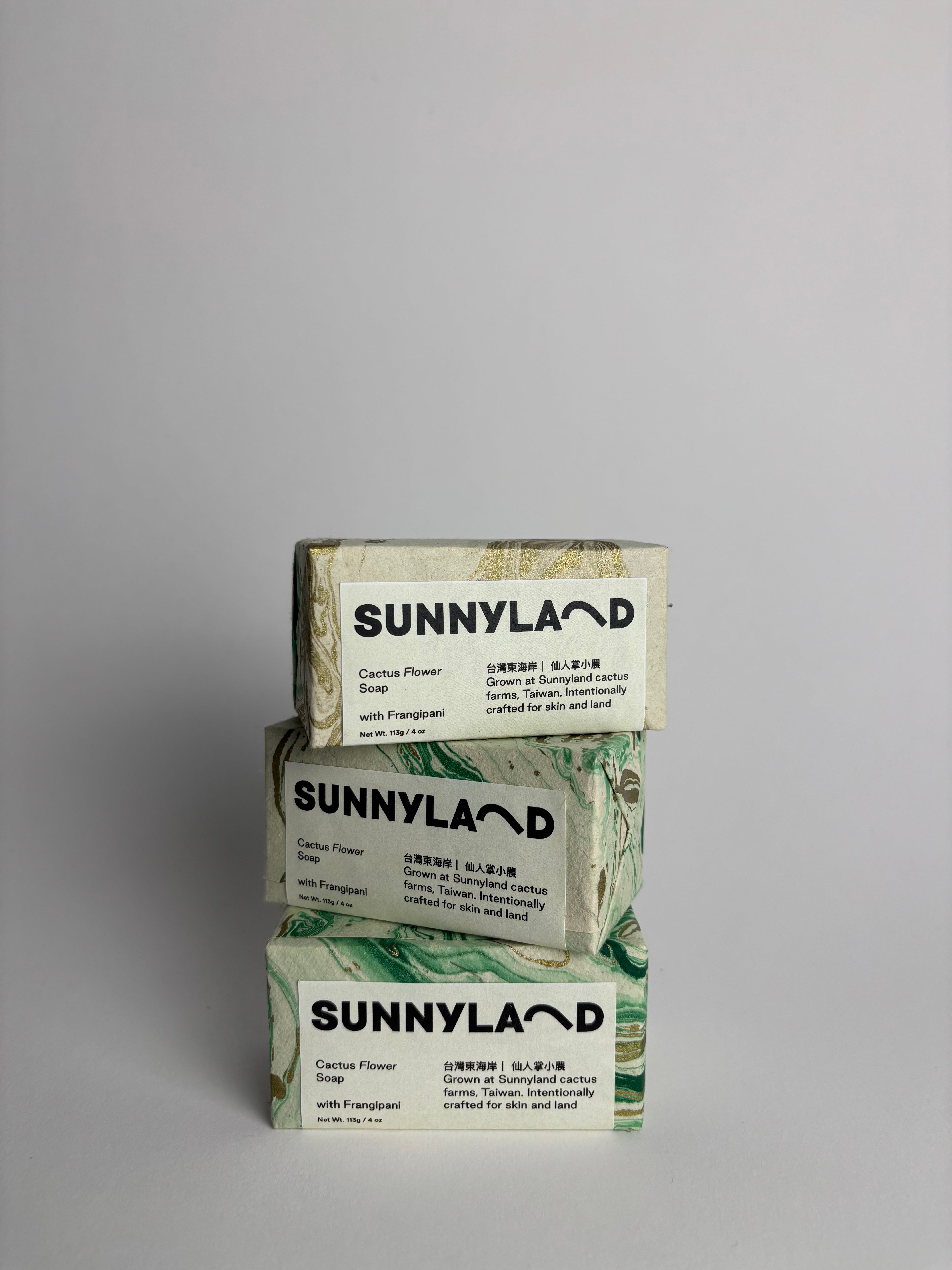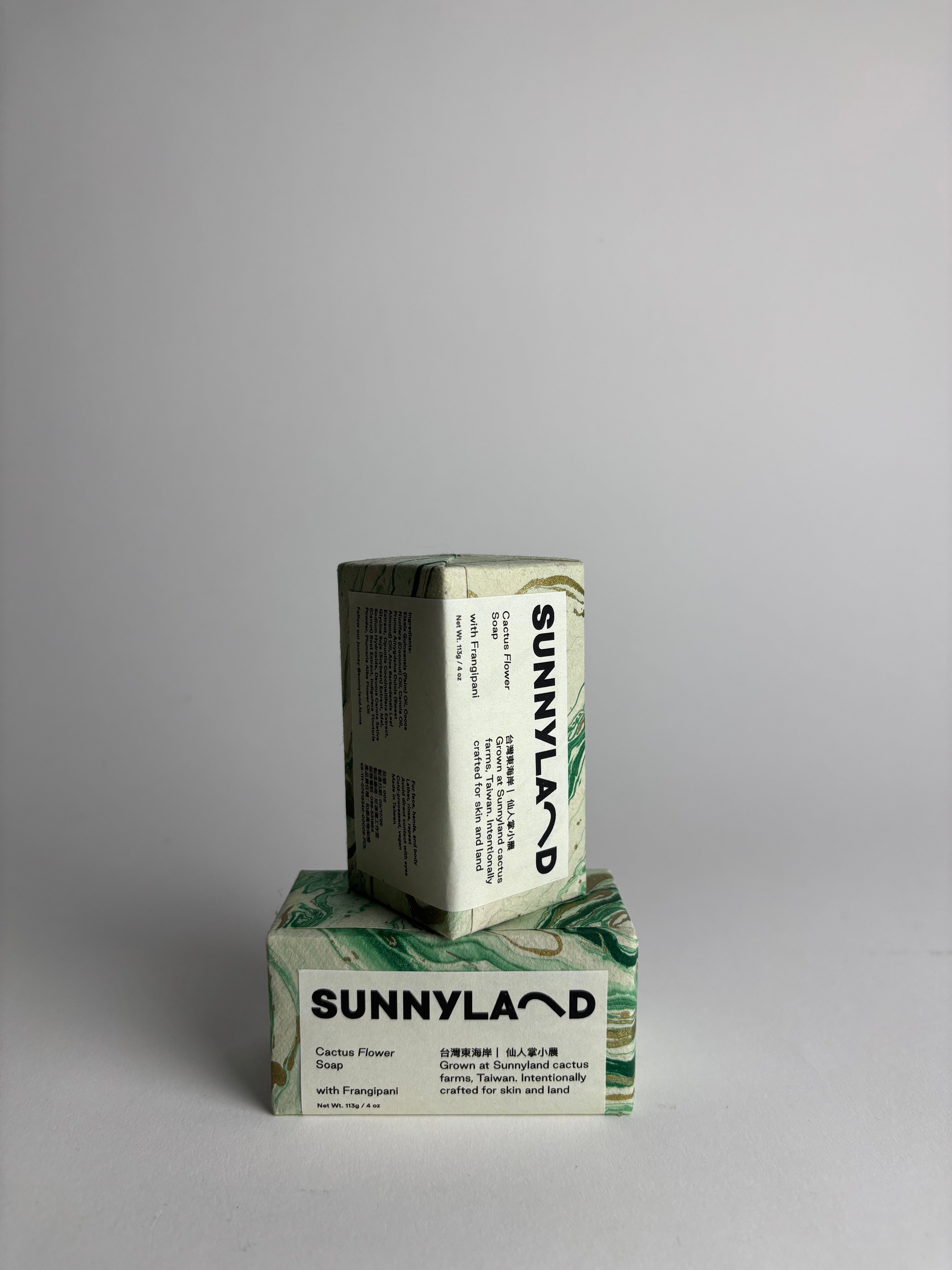 Handcrafted, cold-pressed soap with cactus grown at Sunnyland farms. Contains lemongrass and cactus pulp.