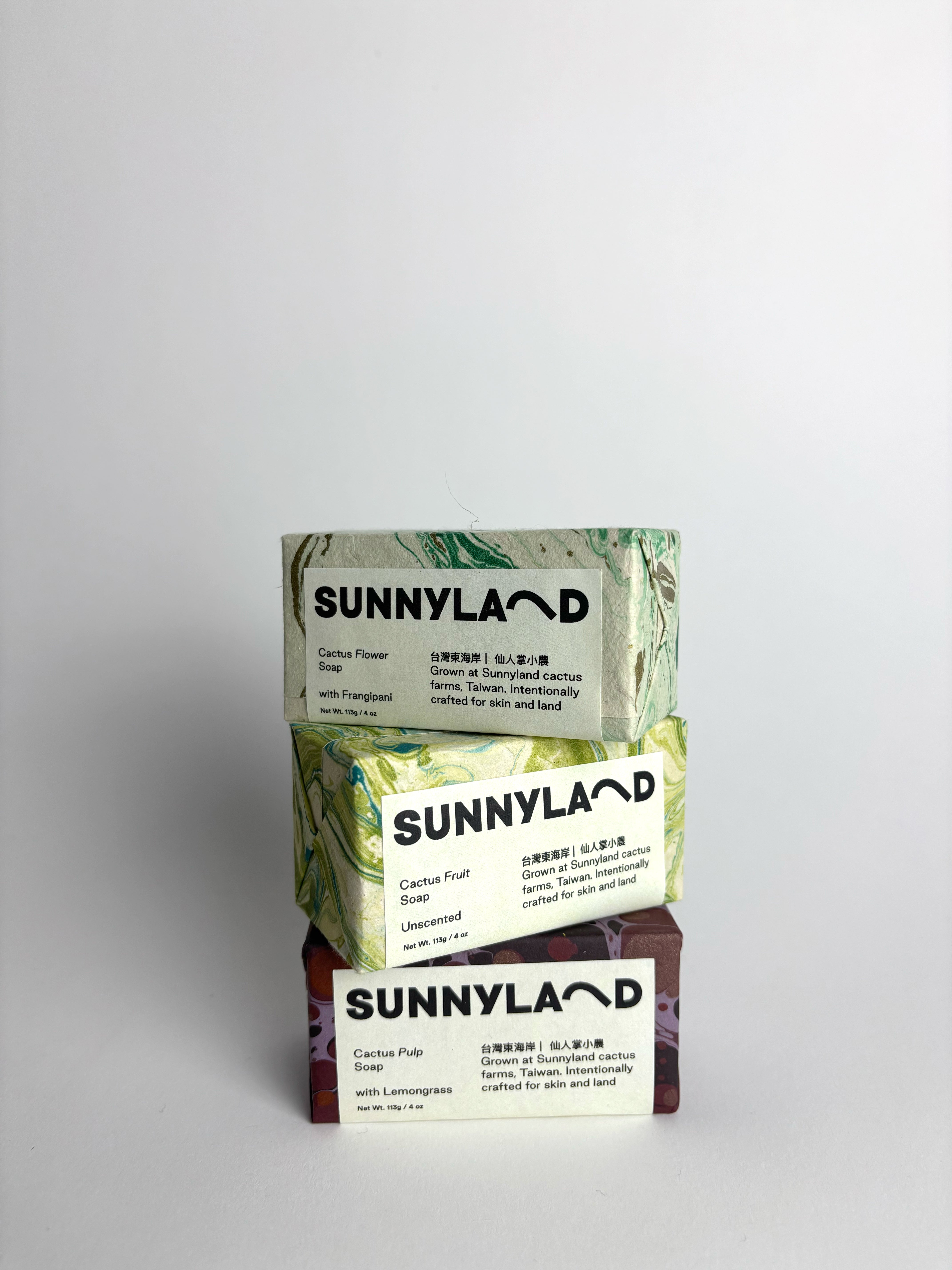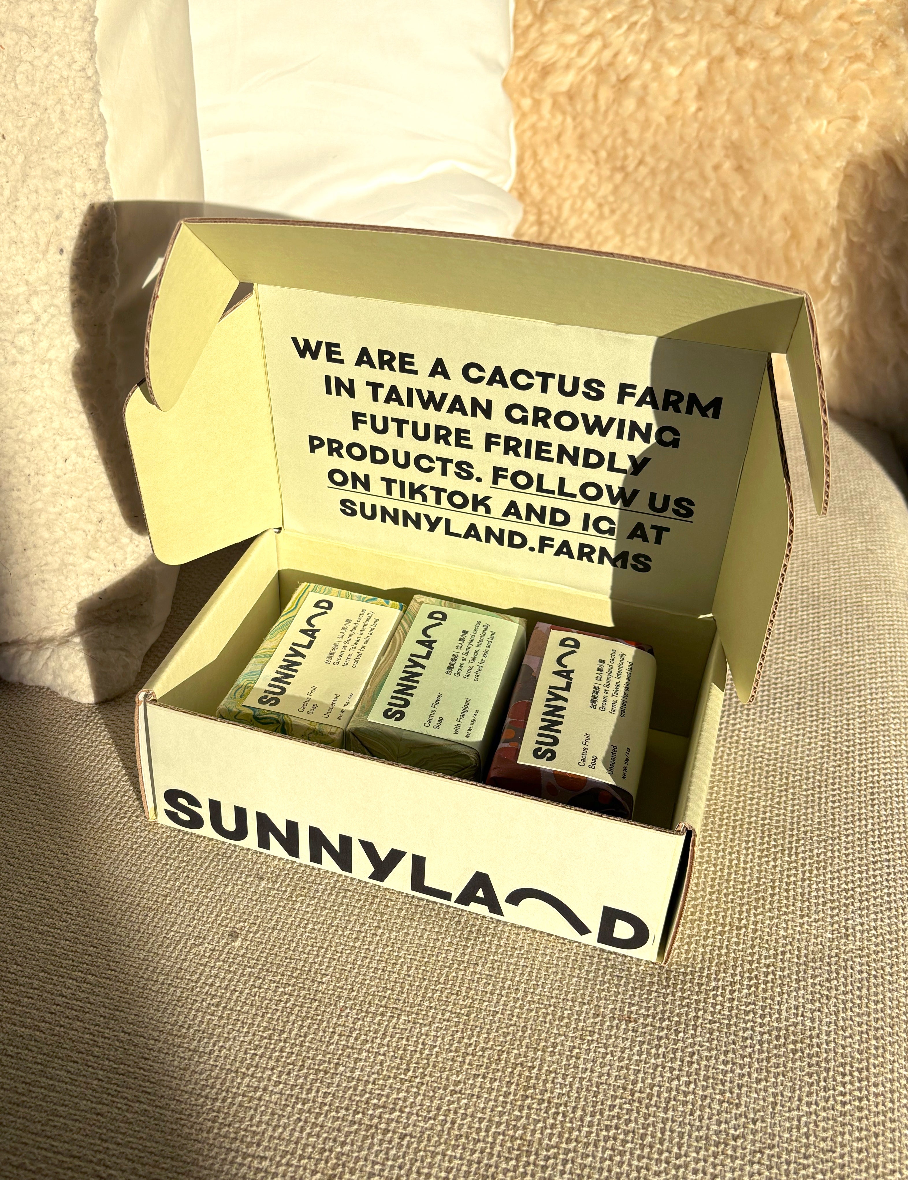 The Sunnyland Cactus Classics Set contains our entire range of three bar soaps in a logo box making it a perfect way to gift our handcrafted soap collection. Made with cactus grown at Sunnyland farms. Preorder ships in February.